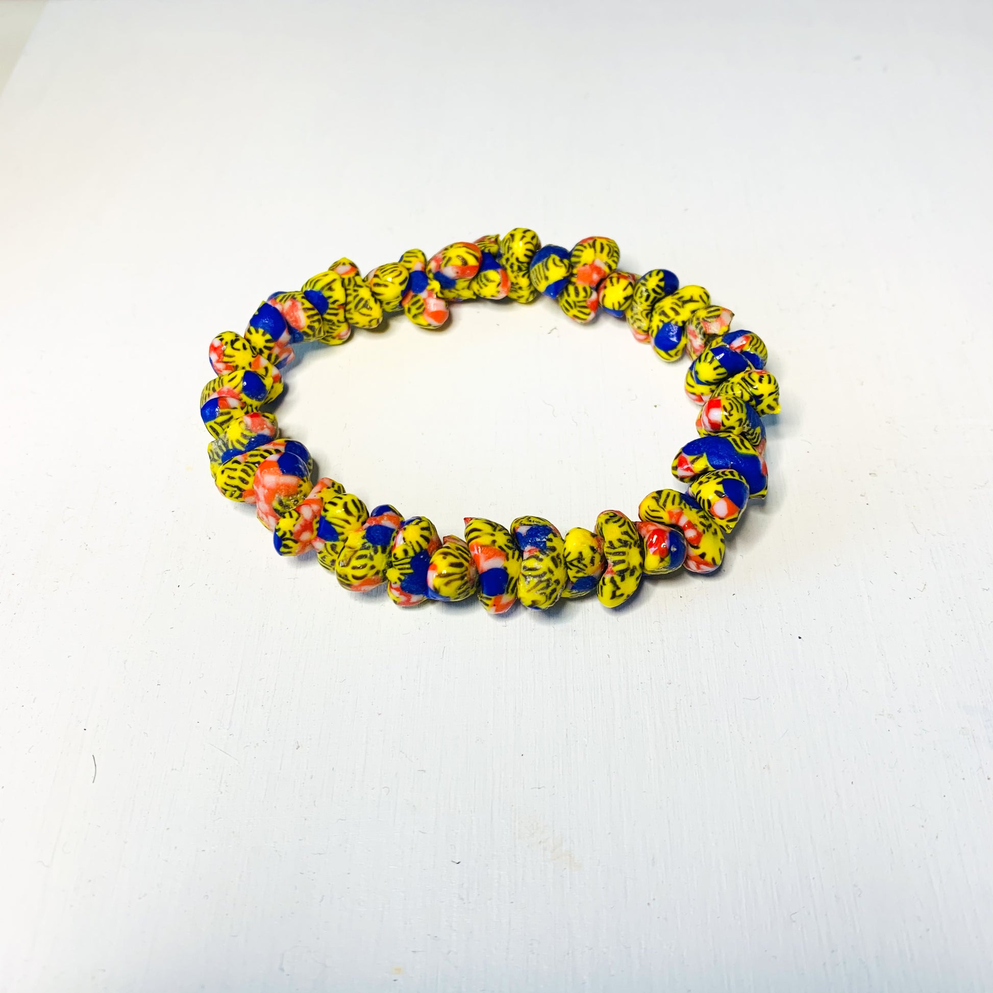 This blue, red, yellow and black elasticated bracelet expands to slip over your hand as you put it on, making it suitable for most wrist size. This is a great addition to your accessories collection or a really wonderful gift idea for a friend or loved one and an even better Christmas stocking filler.