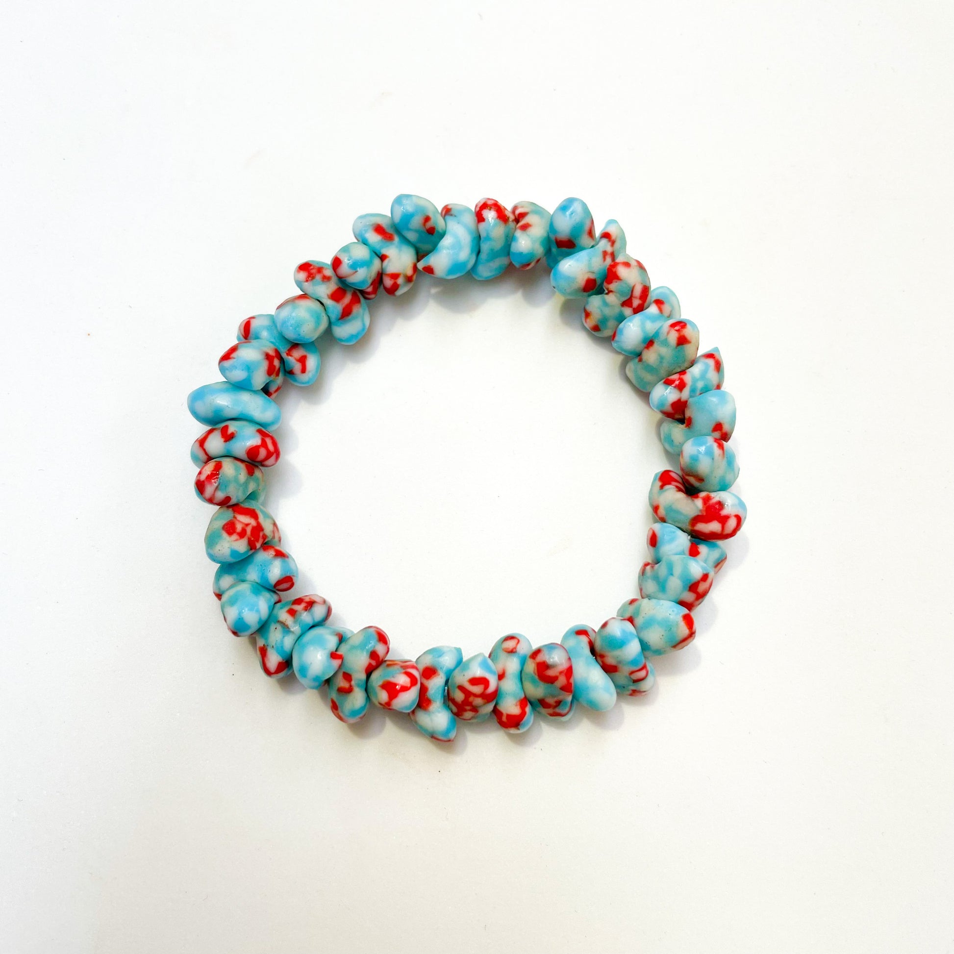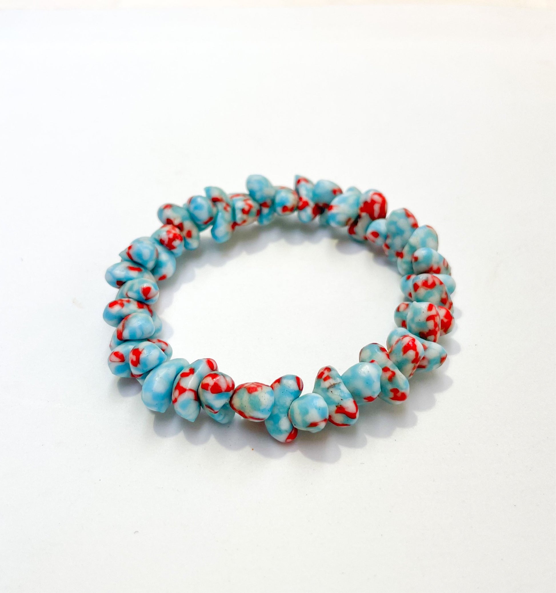 This light blue, red and white elasticated bracelet expands to slip over your hand as you put it on, making it suitable for most wrist size. This is a great addition to your accessories collection or a really wonderful gift idea for a friend or loved one and an even better Christmas stocking filler.