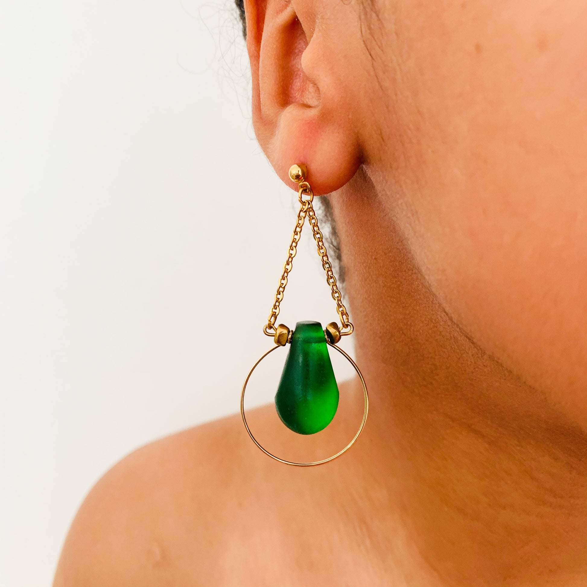 Made incorporating vintage Malian bridal beads and fine 24k vermeil gold wire to create a snazzy drop hoop with a modern minimal twist.