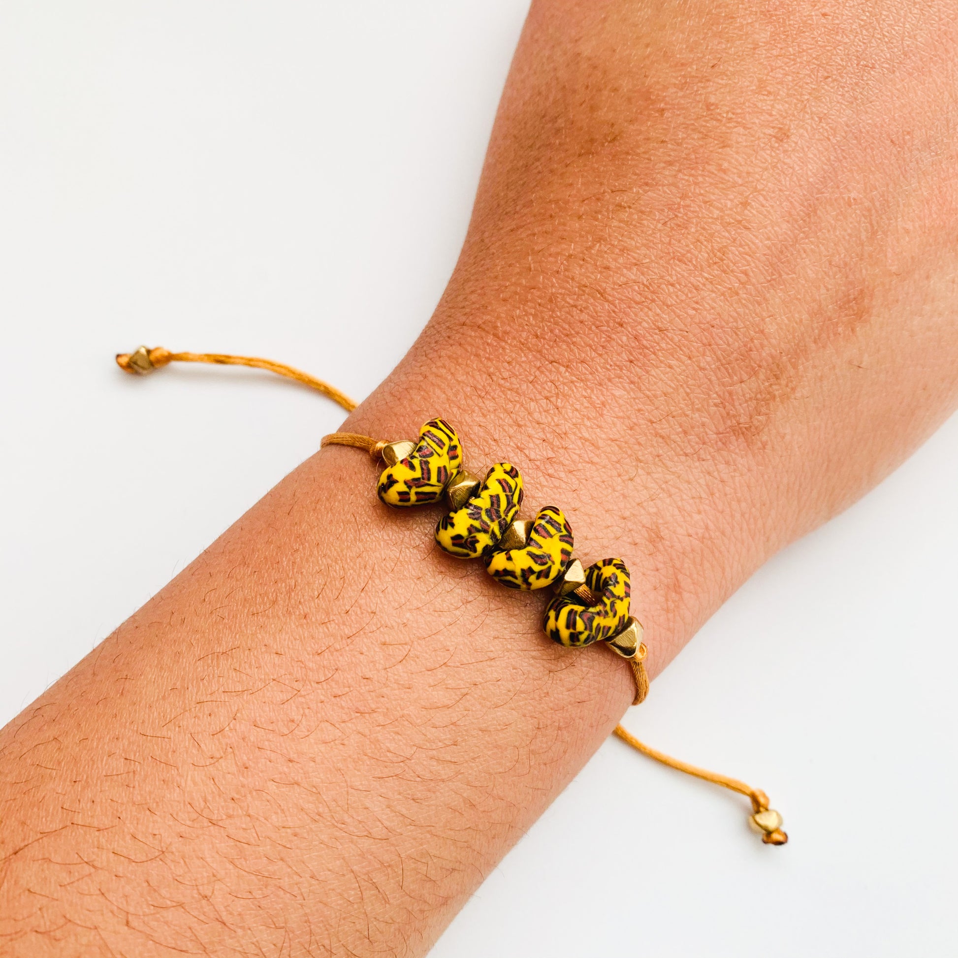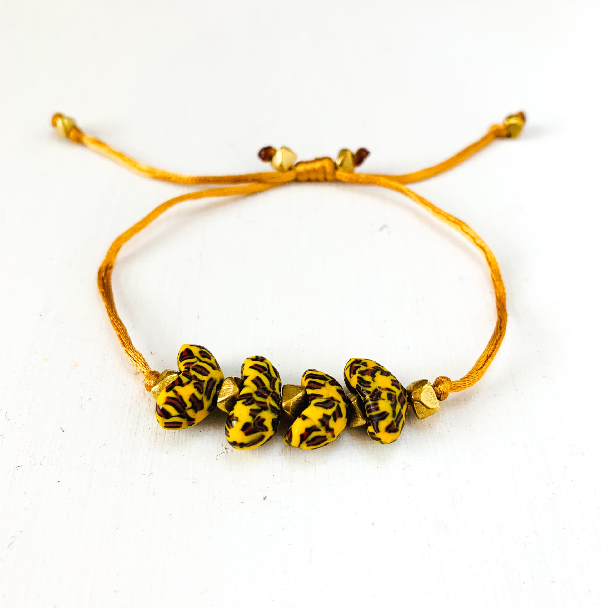 A Gratitude bracelet with our classic Aggry beads.
