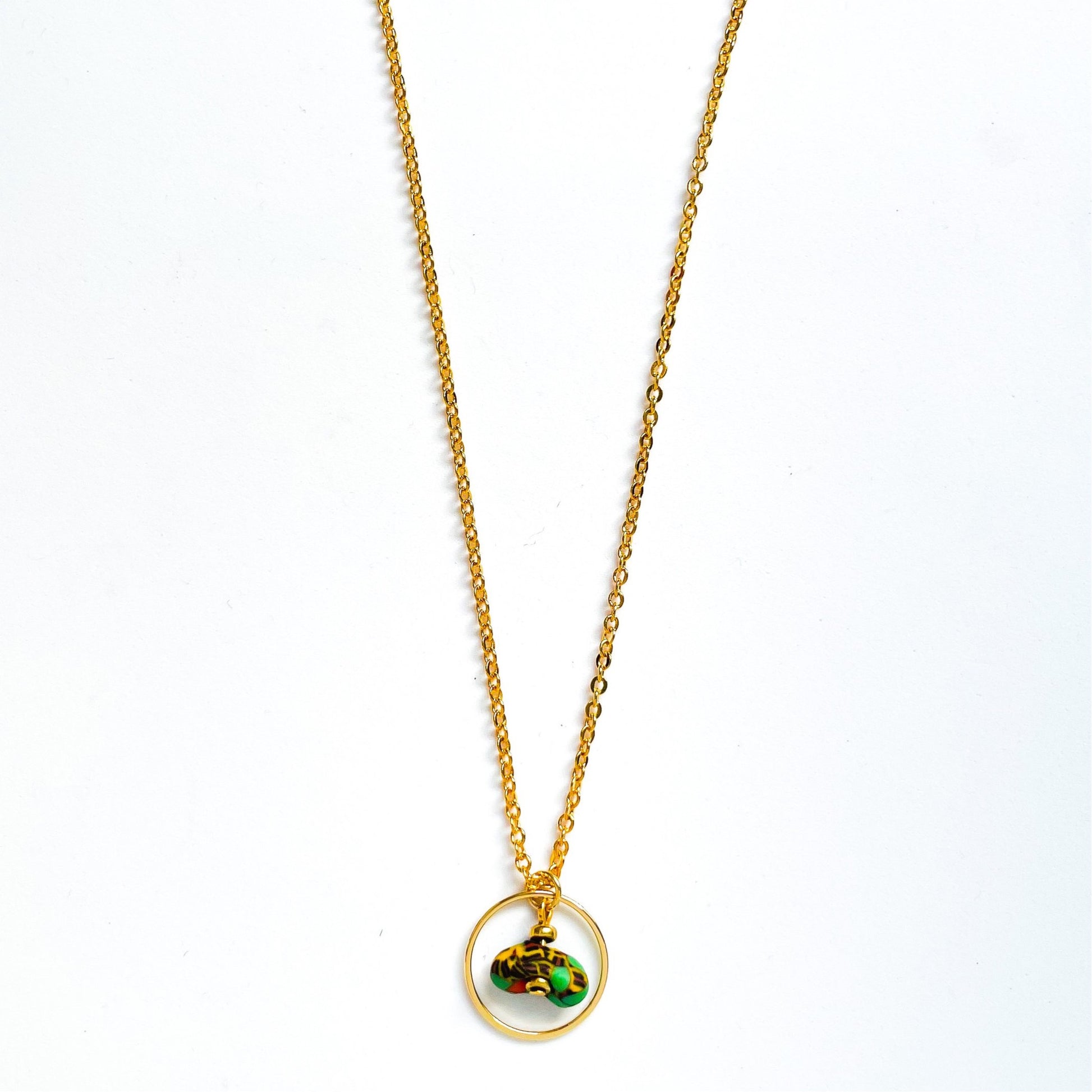 A gorgeous longline necklace, with a sleek circle of life pendant, featuring our signature bead in a exclusive colour way which is warm and complementary to anyway skin tone.