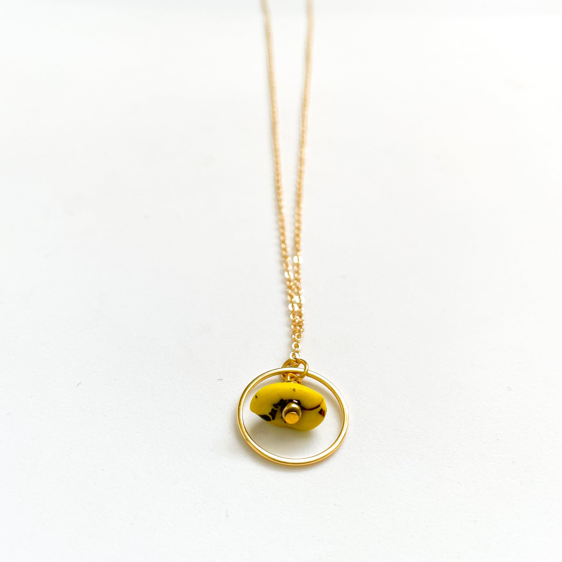 A gorgeous longline necklace, with a sleek circle of life pendant, featuring our signature bead in a exclusive colour way which is warm and complementary to anyway skin tone.