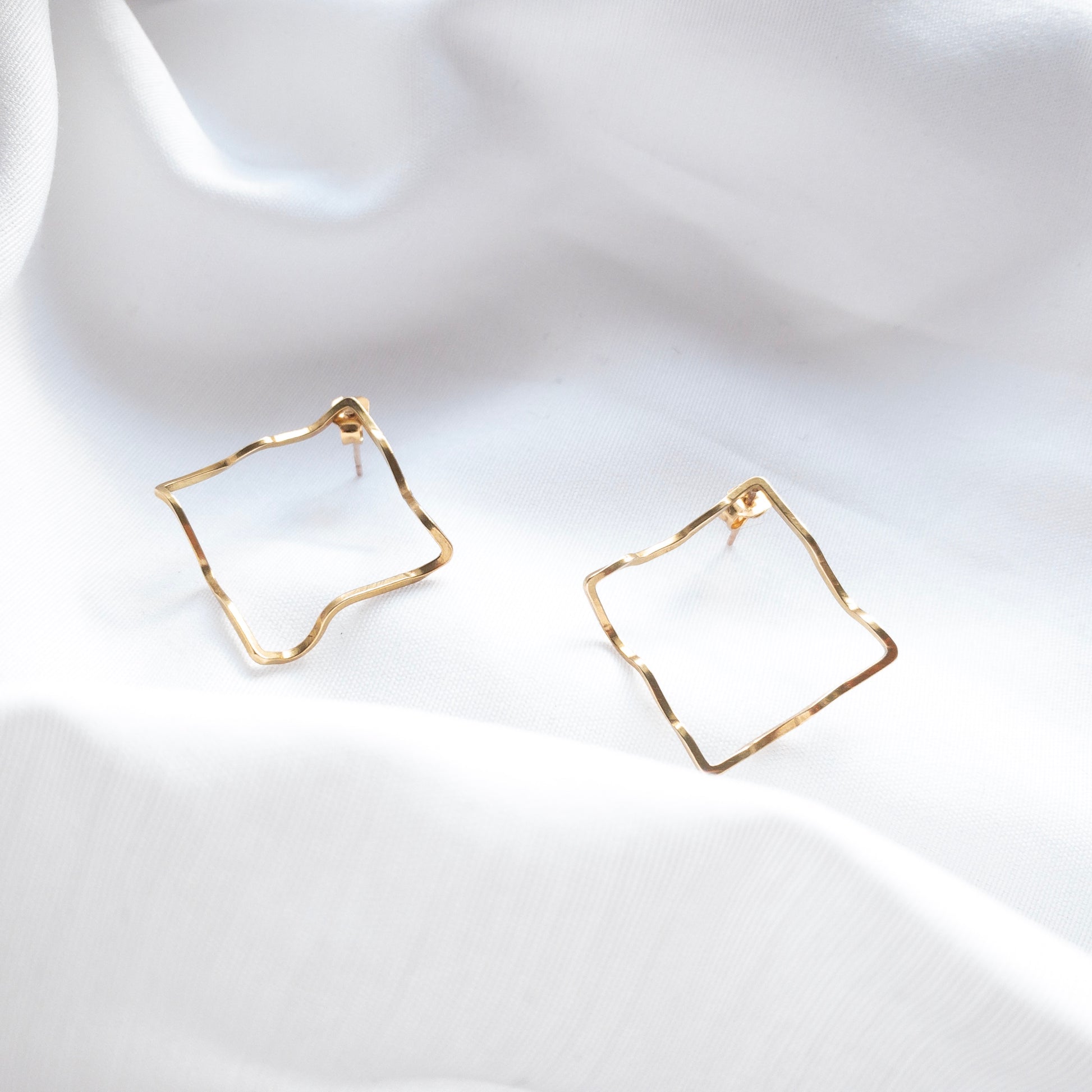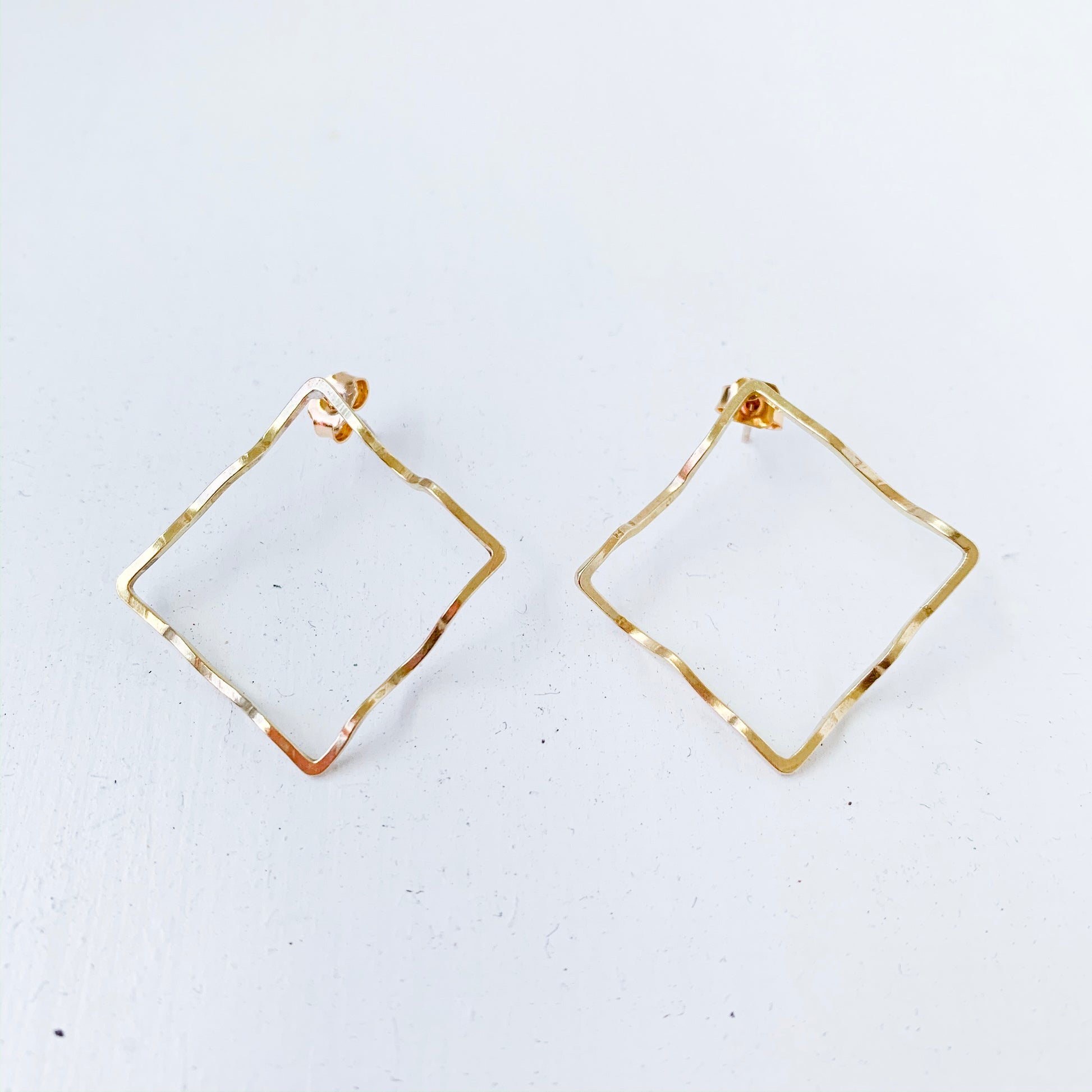 Square wire diamond shaped studs. These delicate beauties are no fuss chic.