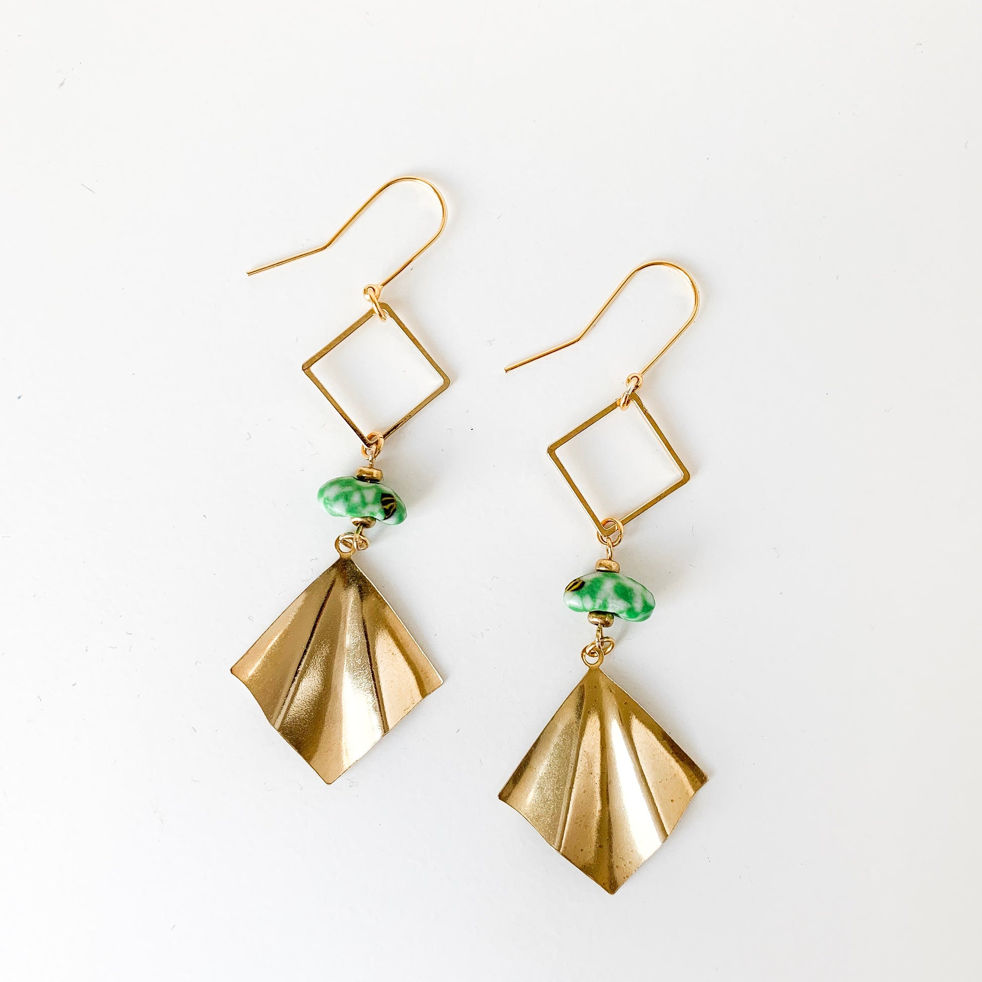 This is classic Katiico mix of hand cut geometric shapes and glass Aggry bead is a worthy accompaniment to your party outfit!